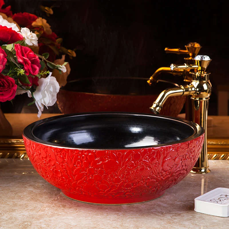 Europe Style Handmade Red Color Countertop Ceramic Bathroom Wash Basin Bathroom Sink Art Wash Bowl Bathroom Wash Basin Wash Basinwash Basin Bathroom Aliexpress