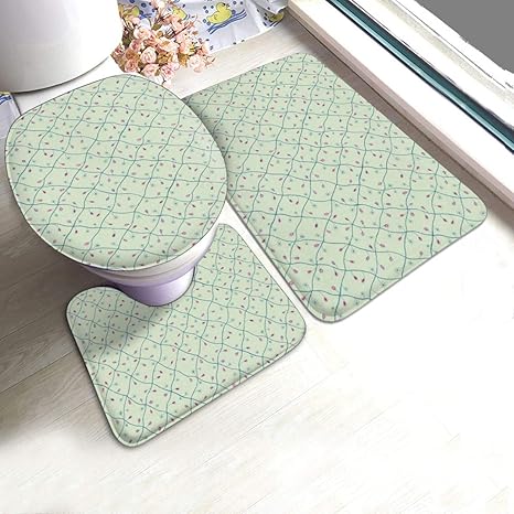 Amazon Com Nfdf Light Green Plaid 3 Piece Bathroom Rug Set Anti Skid Pads Bath Mat Contour Toilet Lid Cover Home Kitchen