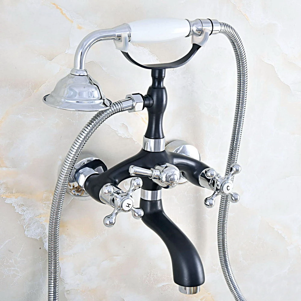 Black Silver Dual Cross Handles Bathtub Shower Faucet Wall Mount Bathroom Tub Faucet With Handheld Sprayer Zna601 Bathtub Faucets Aliexpress