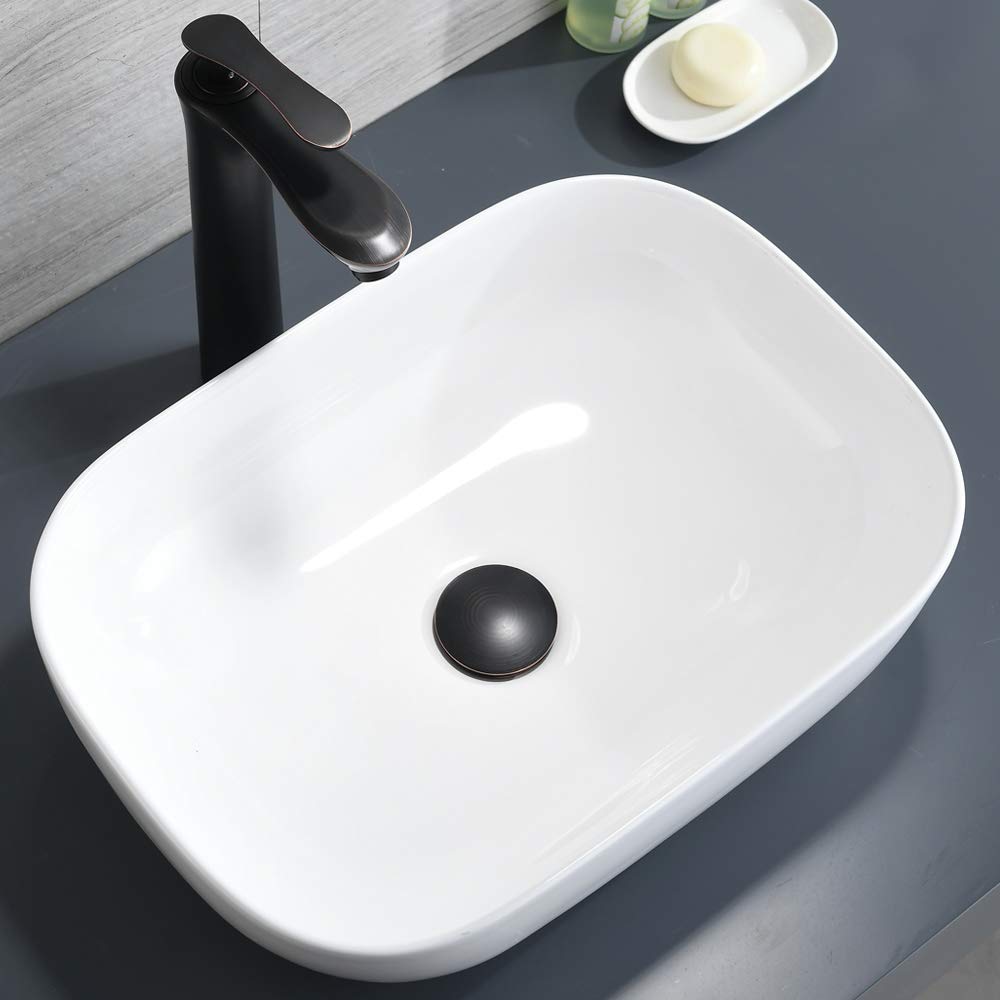 Boomhoze Rectangle Above Counter Porcelain Ceramic Bathroom Vanity Vessel Sink Art Basin With Orb Vessel Sink Faucet And Drain Amazon In Home Improvement