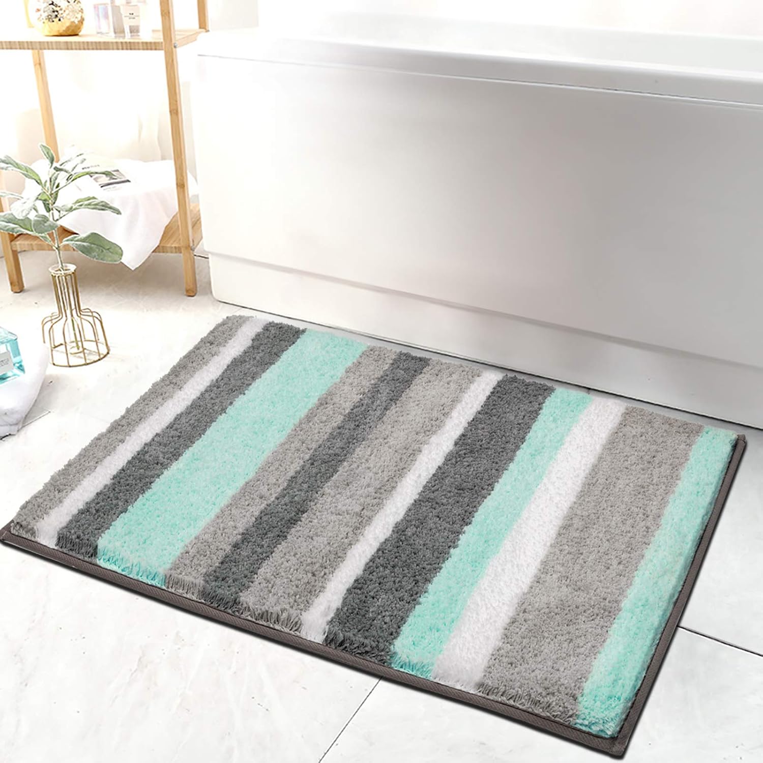 Buy Hebe Non Slip Bathroom Rug Mat Shag Microfiber Shower Bath Rug Absorbent Bath Mat For Bathroom Machine Washable 1826 Blue Grey Online At Low Prices In India Amazon In