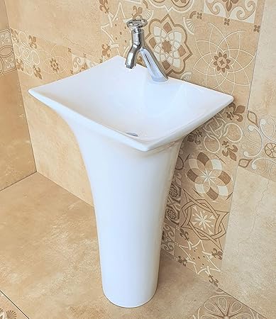 Inart Ceramic One Piece Pedestal Wash Basin Free Standing Size 18 X 15 Inch Square White Amazon In Home Improvement