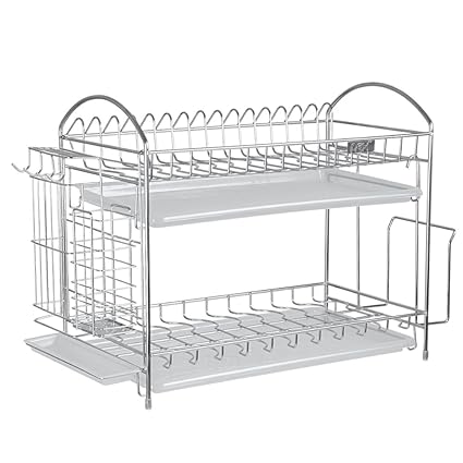 ISPECLE Stainless Steel 2 Tier Dish Rack Regular price 5999 Sale price 3999 Save 2000 Quantity. Small Body with Large Capacity The 2 tier rack can store 15 plates and multiple bowls and cups 2 side baskets can hold silverware and cutting boards perfect for singles or couples a small apartment or the space is small. Stainless Steel Kitchen Rack.