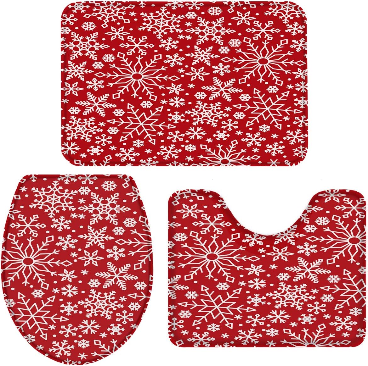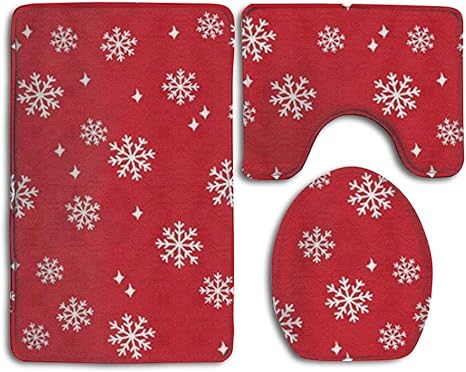 Amazon Com Beautytoiletlidcoverabc Snowflake Red Christmas Bath Mat Set 3 Piece Bathroom Mats Set Non Slip Bathroom Rugs Contour Mat Toilet Cover Home Kitchen