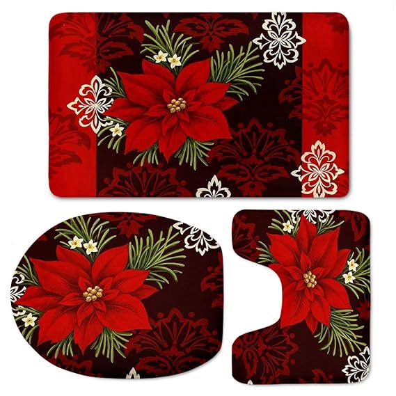 Buy 3 Pieces Bathroom Rugs Set Personalized Christmas Red Poinsettia Bath Mats Set Non Slip Bath Rugs Carpets Mats For Toilet Tub Shower Online At Low Prices In India Amazon In