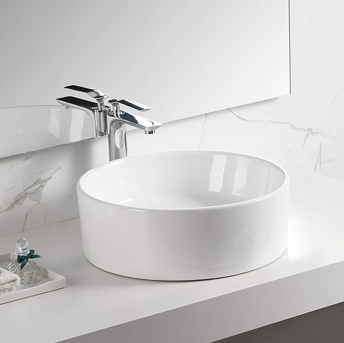Bathroom Vessel Sink 18 Inch Round Above Counter Circle Ceramic Countertop Sink For Cabinet Lavatory Vanity Amazon In Home Improvement