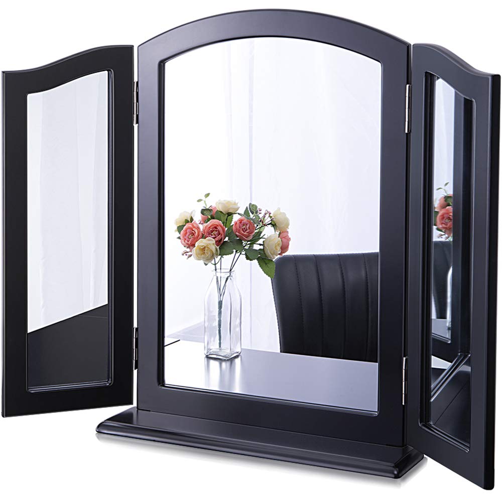 Houseables Trifold Vanity Mirror Hangable on Wall 31 x 1 x 21 Single 3 Way Tri Fold Big Mirrors for Tables Bedrooms Bathroom Makeup Tabletop Three Part Beveled Edges 111 91 42. You have clicked a page that seems to be very popular. Framed mirror 3-way mirror for a different angle to do a more refined makeup with 10 dimmable LED bulbs natural soft and not glaring HD lighting is designed for makeup.