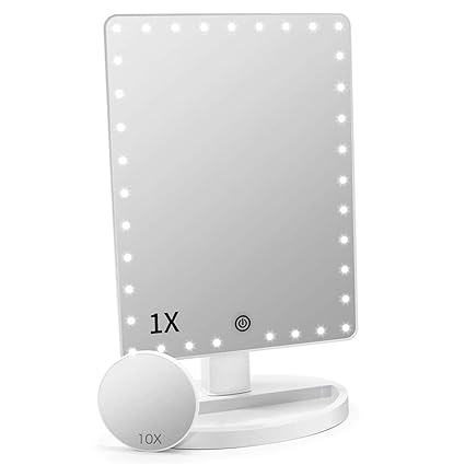 Fascinate Large Lighted Makeup Mirror Makeup Vanity Mirror With 35 Led Lights And 10x Magnification Touch Screen 360a A Free Rotation Dual Power Supply Countertop Cosmetic Mirror White 35led Amazon In Home Kitchen