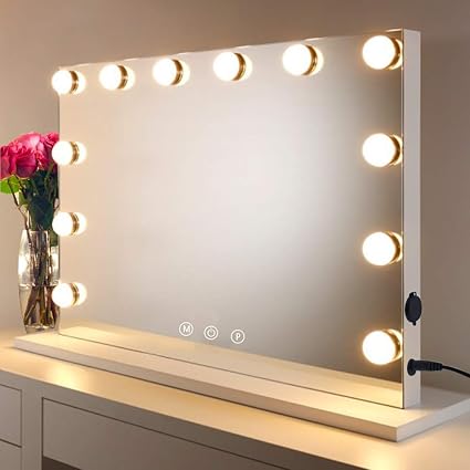 Buy Waneway Lighted Vanity Mirror With 12 X 3w Dimmable Led Bulbs And Touch Control Design Hollywood Style Makeup Cosmetic Mirrors With Lights White Online At Low Prices In India Amazon In